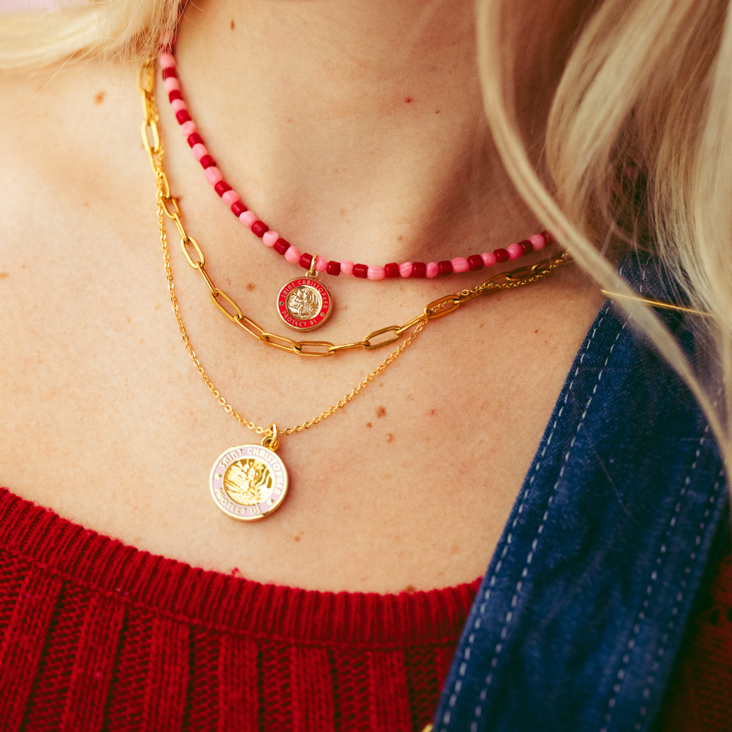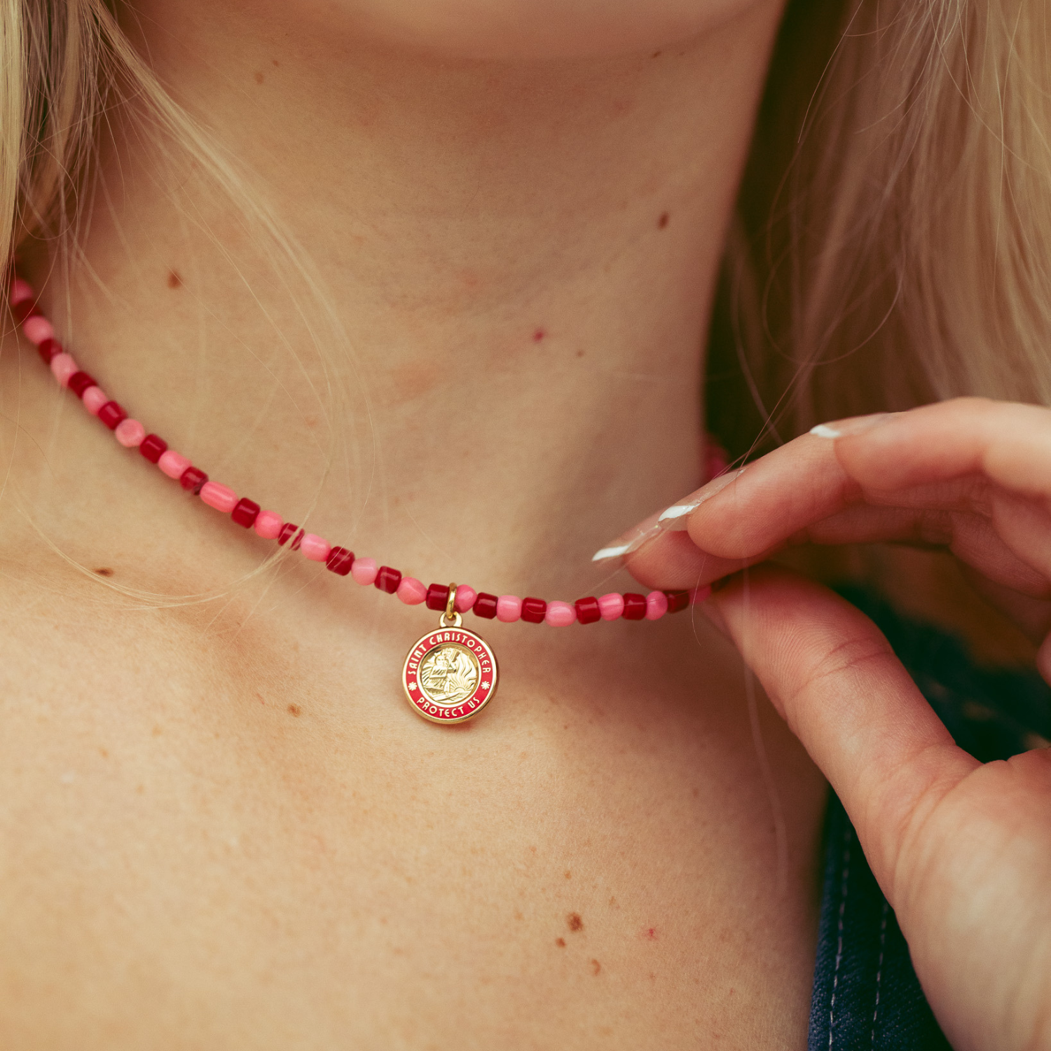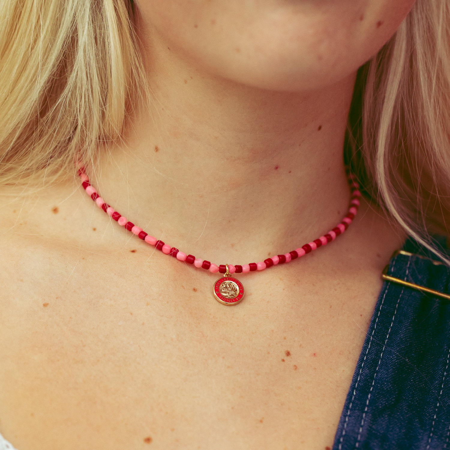 Celebrate love and adventure with the Hearts on Fire Beaded Choker, the perfect accessory for Valentine’s Day and beyond. Featuring vibrant red and pink beads paired with a stunning gold red St. Christopher charm, this choker blends the spirit of love with the laid-back vibes of the beach. Designed to capture the essence of protection and travel, it’s ideal for anyone who loves coastal style and timeless St. Christopher jewelry. Perfect for gifting or treating yourself to a little seaside-inspired love!