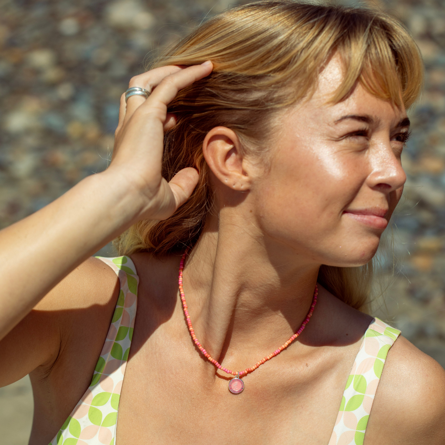 Pink Palms Beaded Choker - Watermelon Pink