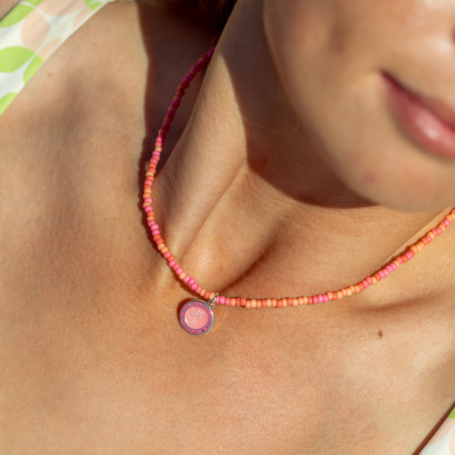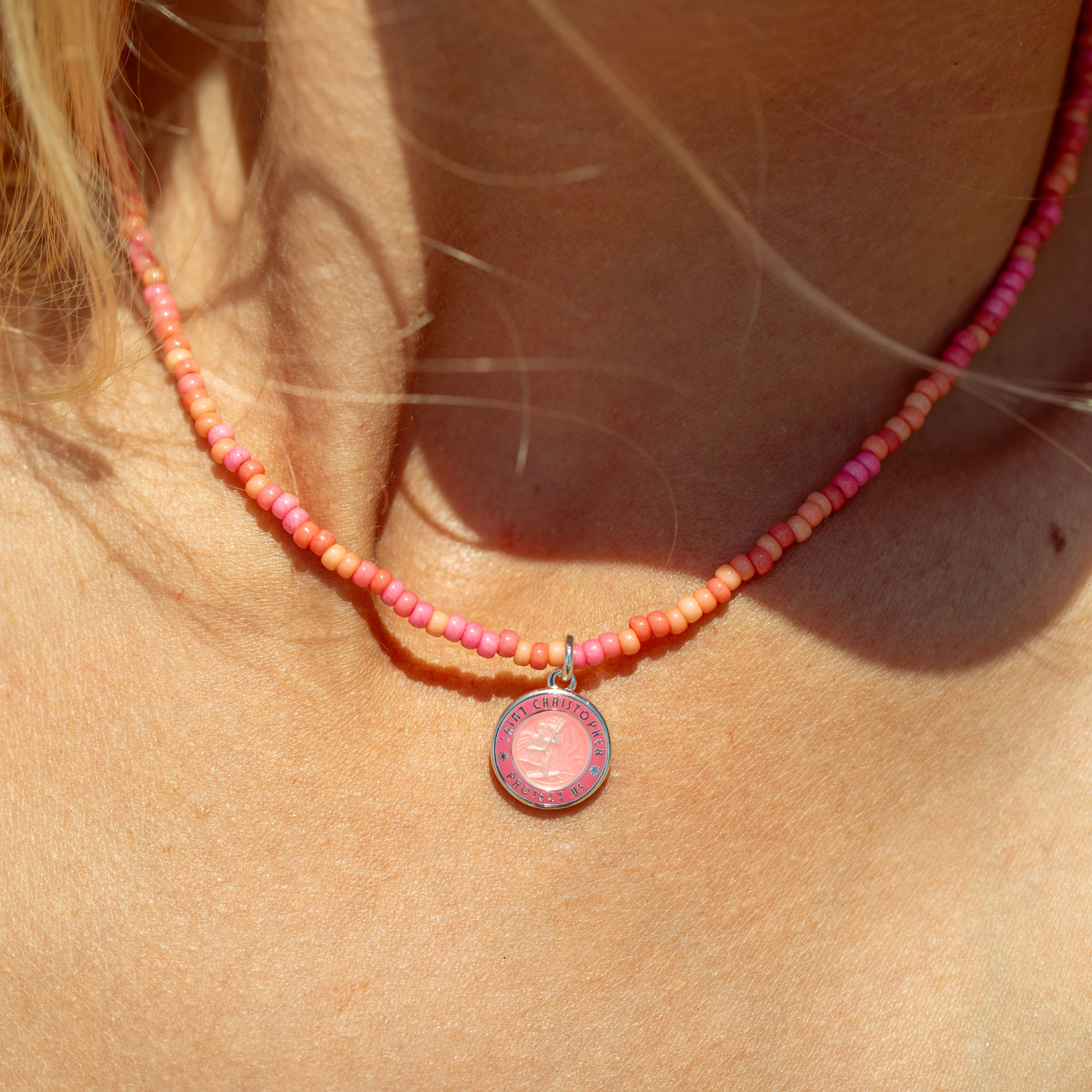 - Small Watermelon Pink St. Christopher Pendant