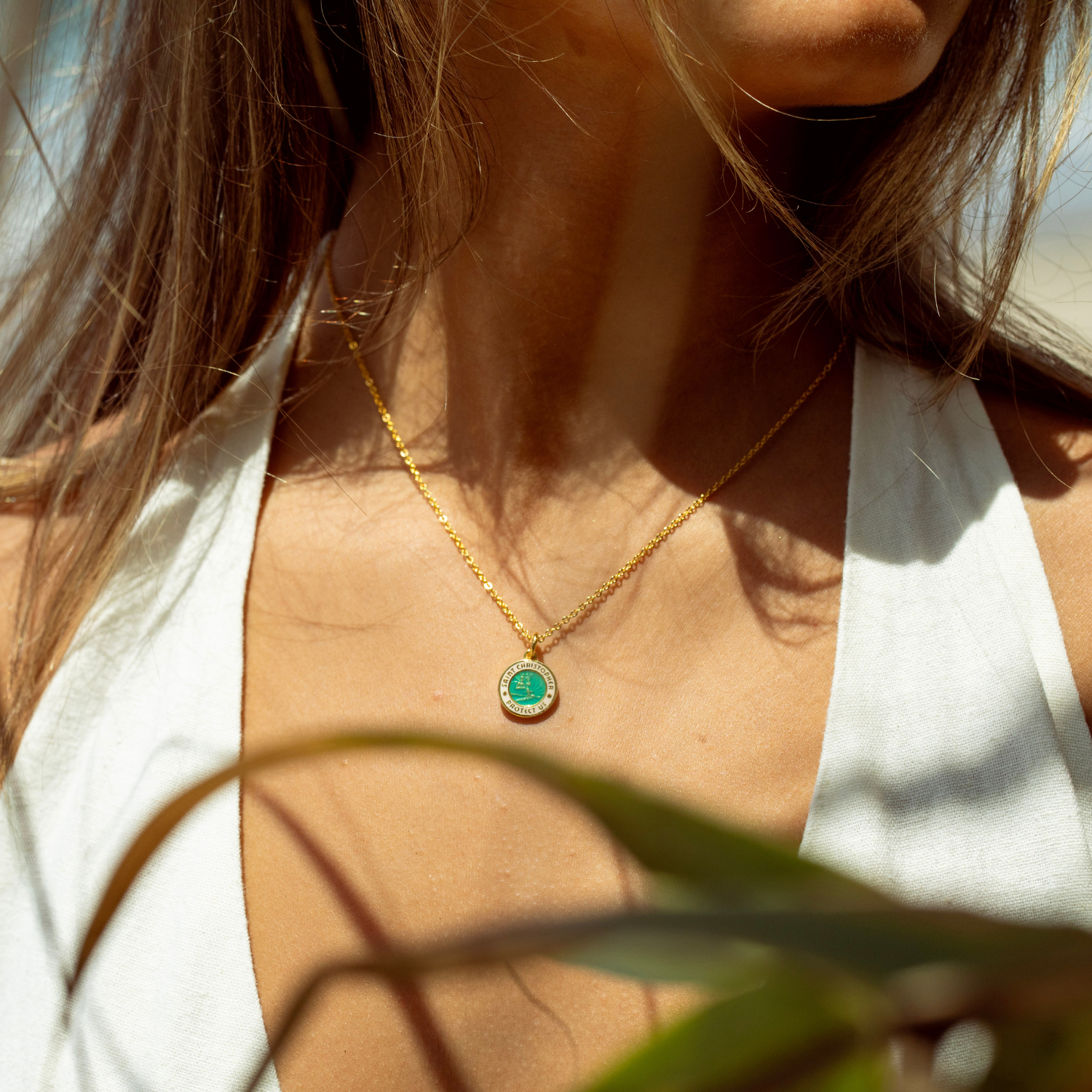 Our best-selling color ever—now in gold! Our new Gold Aqua White St. Christopher Necklace features the iconic aqua white color on a shiny gold base and sleek gold chain for a classic look made for everyday wear.