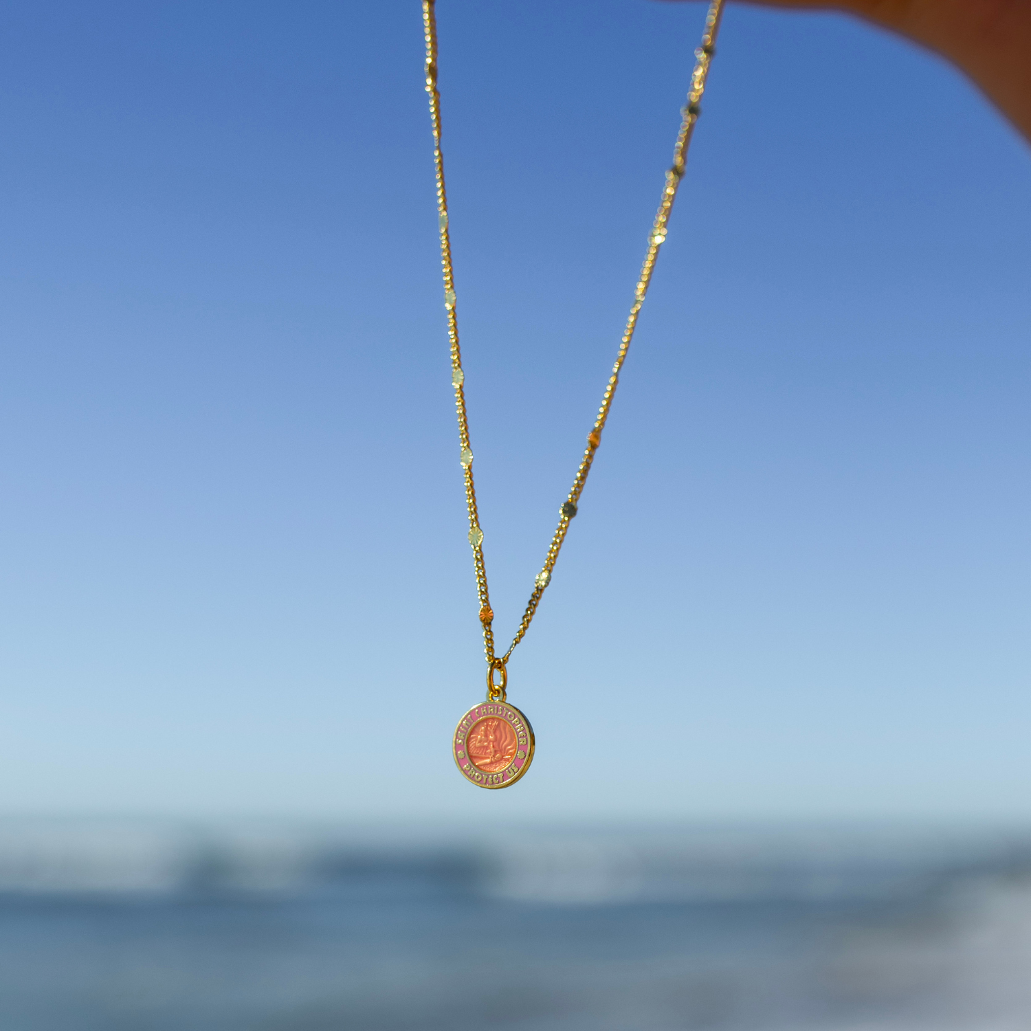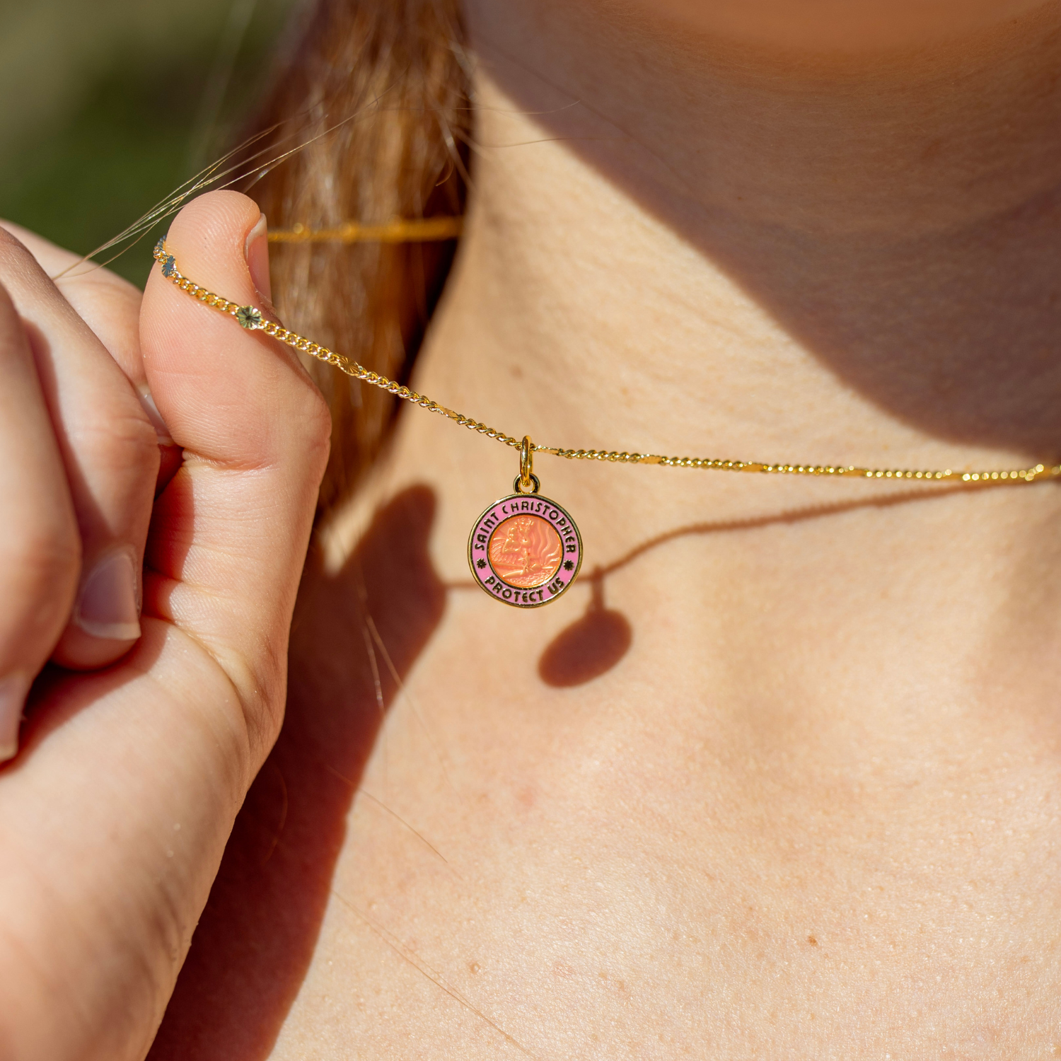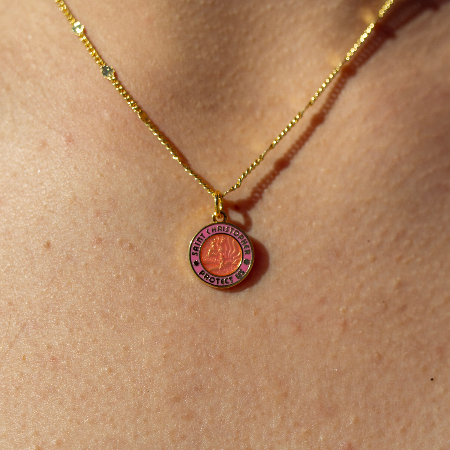 Bright, bold, and full of heart—our Small Gold / Pink St. Christopher is part of our Valentine’s Day collection. Featuring a vibrant pink St. Christopher charm on a gold flat satellite curb chain, it’s a little dose of protection and a lot of good vibes, perfect for someone who keeps your heart shining.
