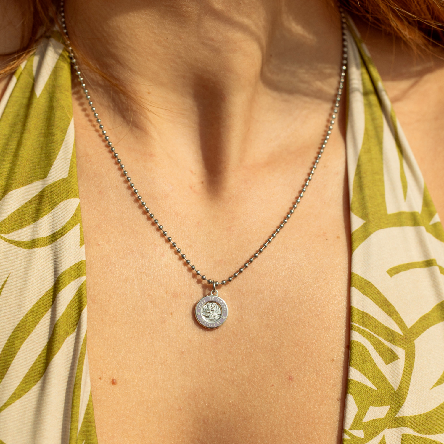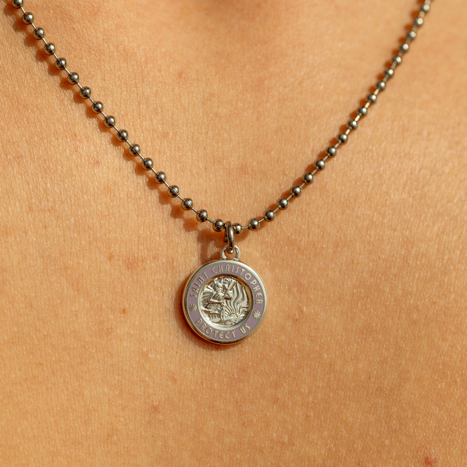 Take a piece of Southern California home with our cute and dainty "St Christopher Necklace". Featuring our newest color way, silver and lavender!