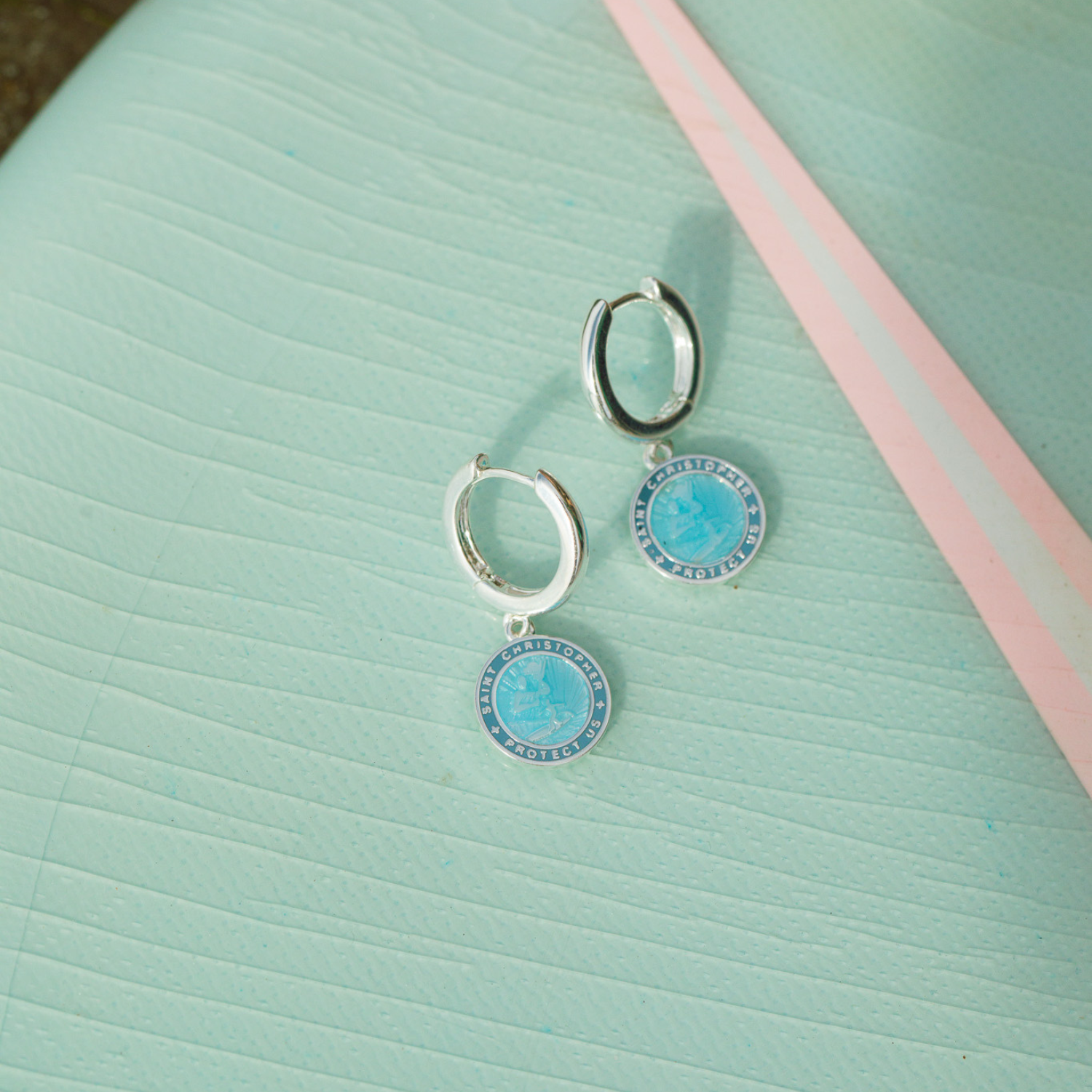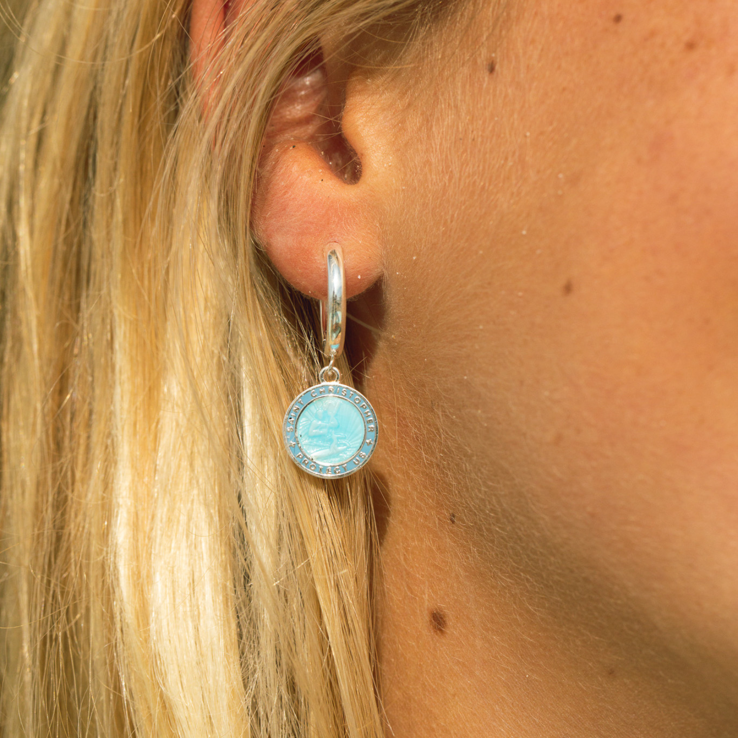 Stay protected in style with our St. Christopher Earrings in a new stunning Denim Blue! Lightweight and vibrant, they’re the perfect blend of charm and coastal-inspired elegance for any outfit.