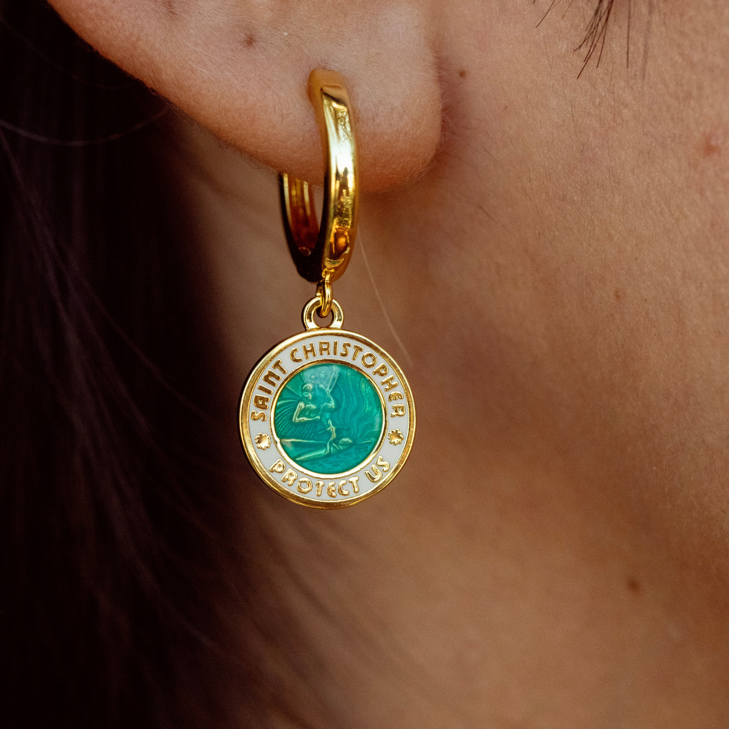 St. Christopher Earrings - Gold / Aqua White