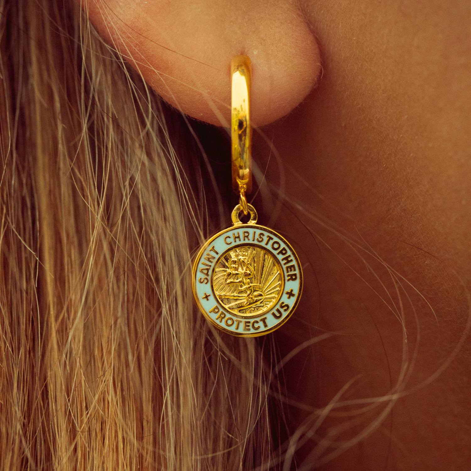 St. Christopher Earrings - Gold / Baby Blue