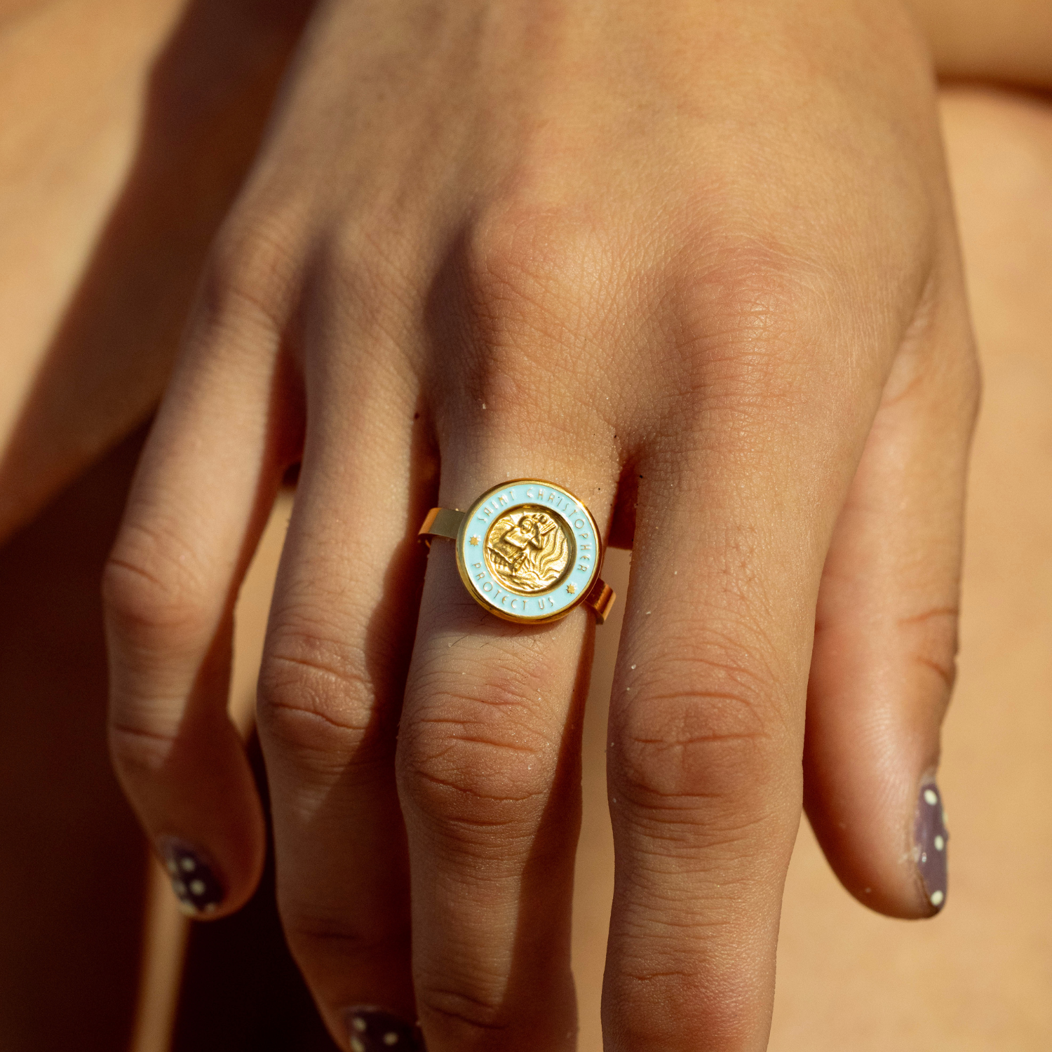 St. Christopher Ring - Gold / Baby Blue
